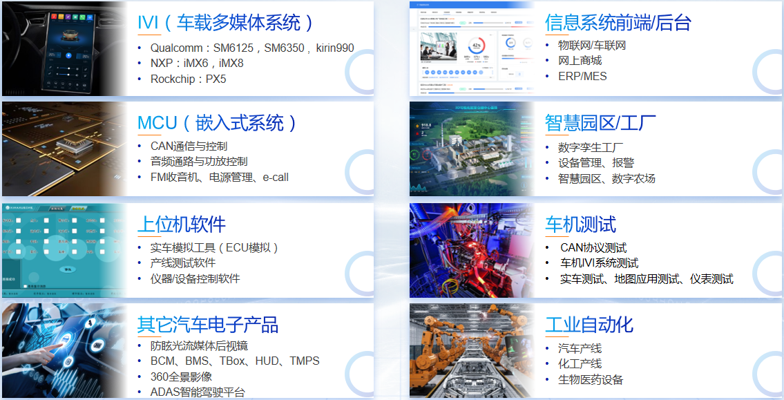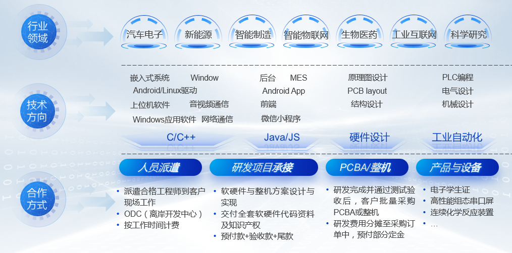 研发技术服务,包括嵌入式系统软硬件研发生产、产线自动化与信息化、非标设备研发制造等等。